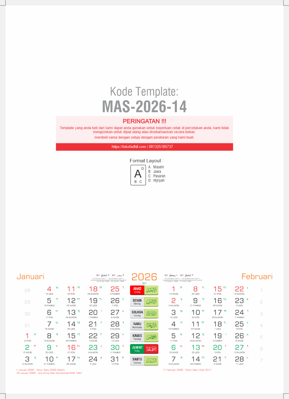 - Koleksi Full Template 2026 dan Hijriyah 1447 hanya dengan Rp 1.000.000,-