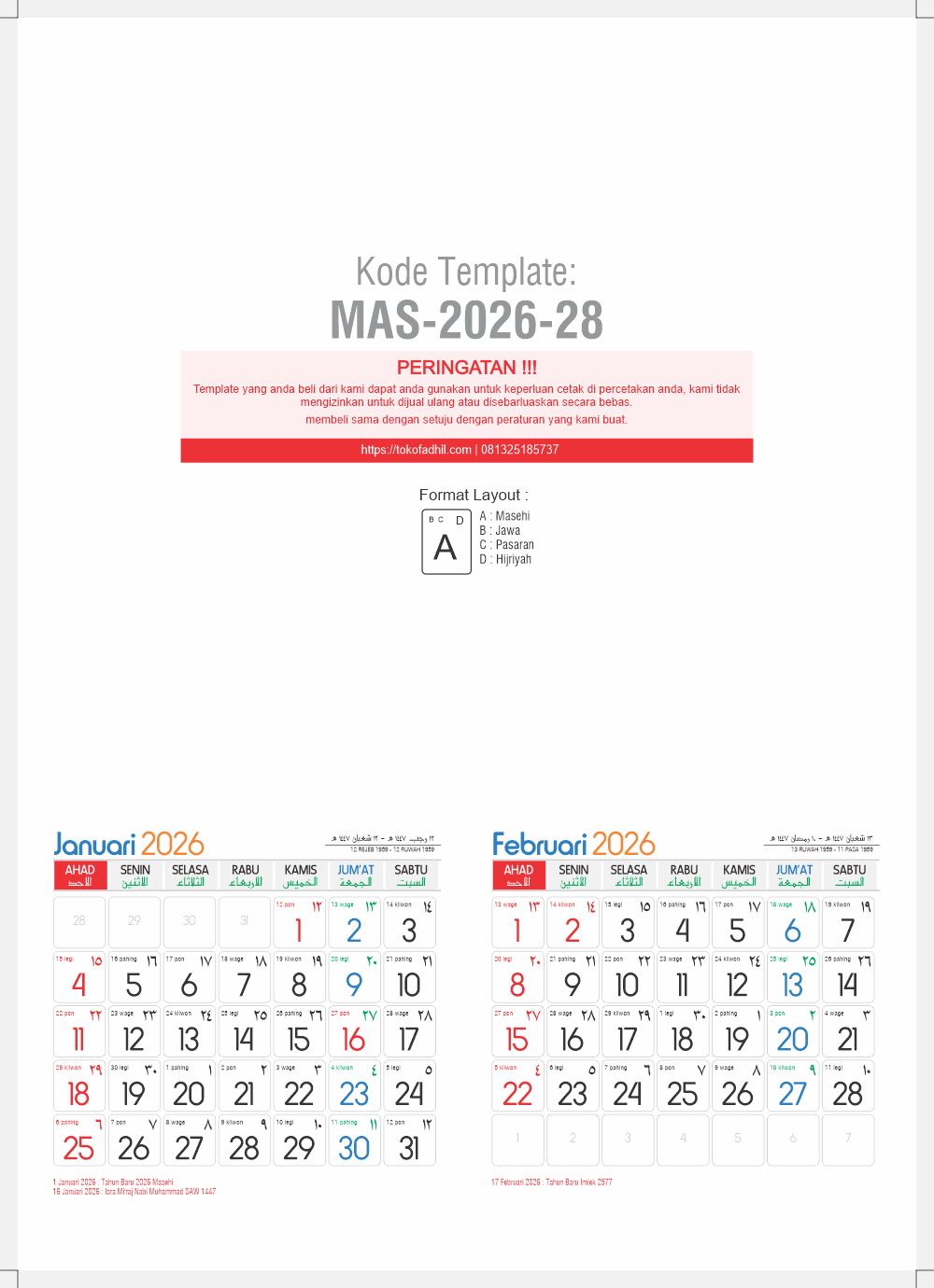 - Koleksi Full Template 2026 dan Hijriyah 1447 hanya dengan Rp 1.000.000,-