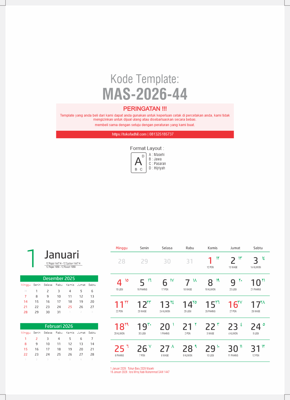 - Koleksi Full Template 2026 dan Hijriyah 1447 hanya dengan Rp 1.000.000,-