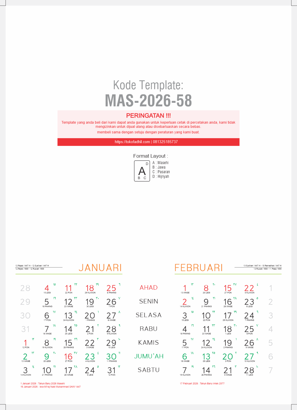 - Koleksi Full Template 2026 dan Hijriyah 1447 hanya dengan Rp 1.000.000,-